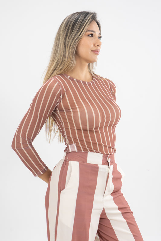 BLUSA SHARON RETRO DOTS LINE - COLOR BEIGE