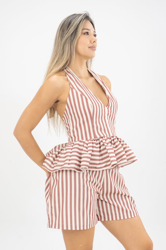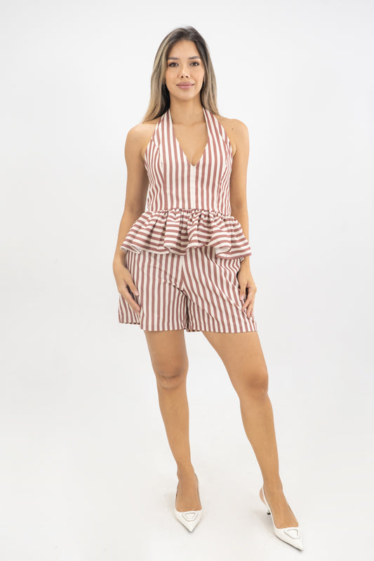 SHORT HADDI RETRO DOTS LINES - COLOR BEIGE