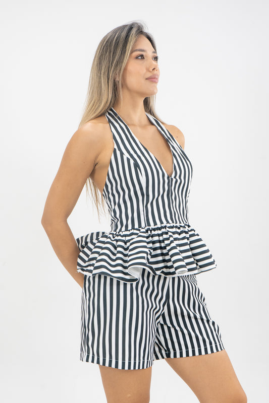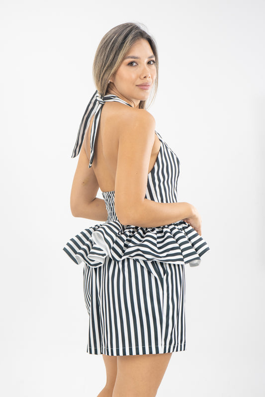 SHORT HADDI RETRO DOTS LINES - COLOR NEGRO