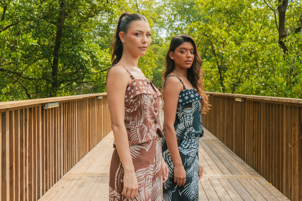 En esta colección, cada textura, forma y color cuenta una historia. Desde las raíces que emergen del agua hasta los reflejos dorados del atardecer sobre la ciénaga. Las prendas evocan las huellas de los animales, la fuerza de la naturaleza y la sensibilidad de lo que permanece invisible a los ojos, pero se siente en el alma.