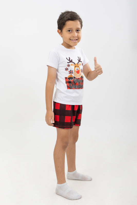 PIJAMA SHORT NIÑOS CUADROS NAVIDEÑOS II
