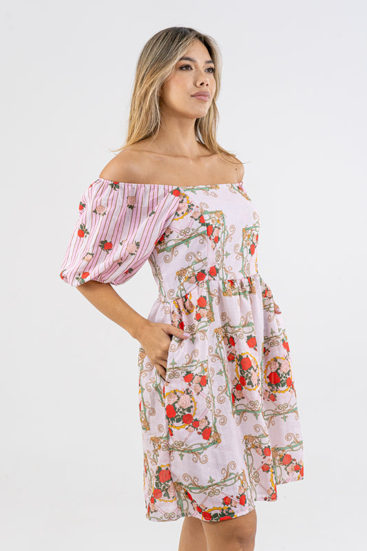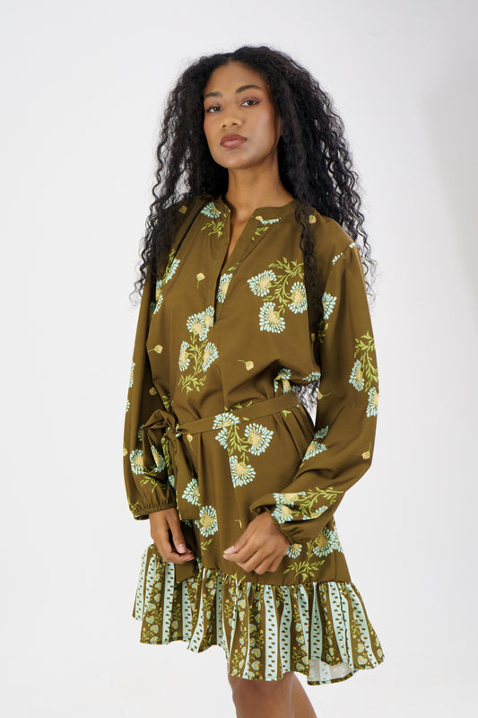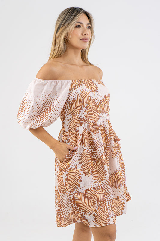 VESTIDO CORTO NATY - FLORES PASTELES MARRON