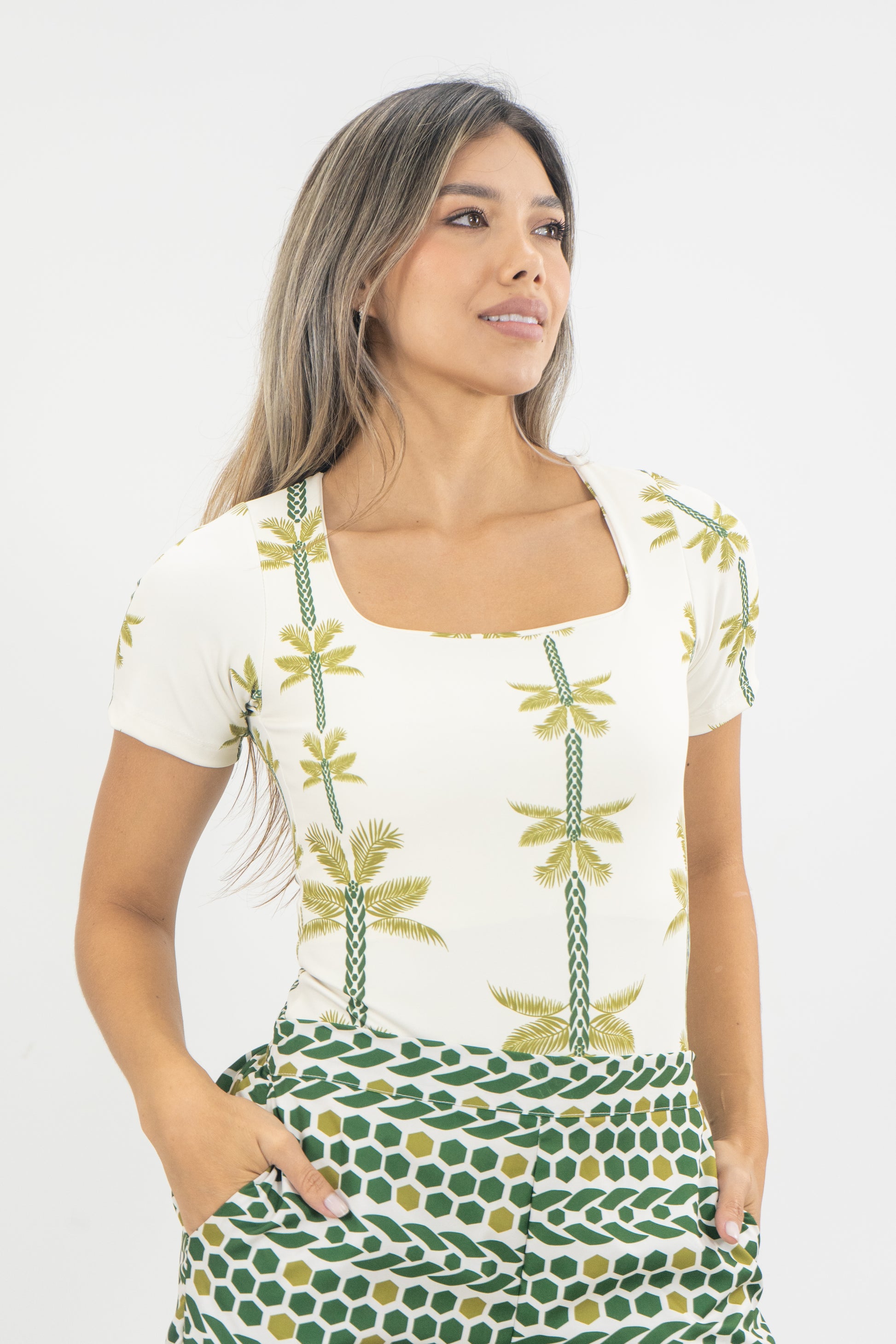 El Body Alma de la colección Palmarias fusiona frescura tropical y elegancia moderna en una pieza que realza la figura con naturalidad. Confeccionado en tela base de licra, ofrece un ajuste cómodo y flexible que se adapta al cuerpo con suavidad, brindando soporte y libertad de movimiento. Su diseño limpio y femenino refleja la armonía entre lo natural y lo sofisticado, inspirado en la serenidad de los paisajes caribeños. Ideal para combinar con pantalones o faldas de la colección, el Body Alma es una prenda versátil que transmite fuerza, belleza y autenticidad, representando la esencia luminosa de Sofisticadas.