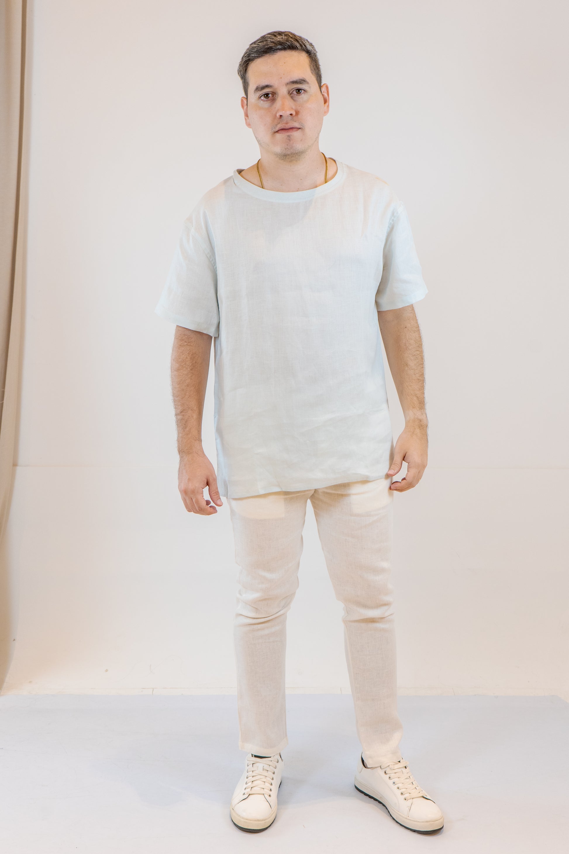 Descubra la elegancia natural de la camiseta Coolino, en tono azul, confeccionada en tela lino de alta calidad. Su textura ligera y transpirable ofrece comodidad superior, ideal para quienes buscan un estilo sofisticado sin sacrificar frescura. Perfecta para cualquier ocasión, esta prenda combina diseño atemporal con un toque moderno que realza su presencia.
