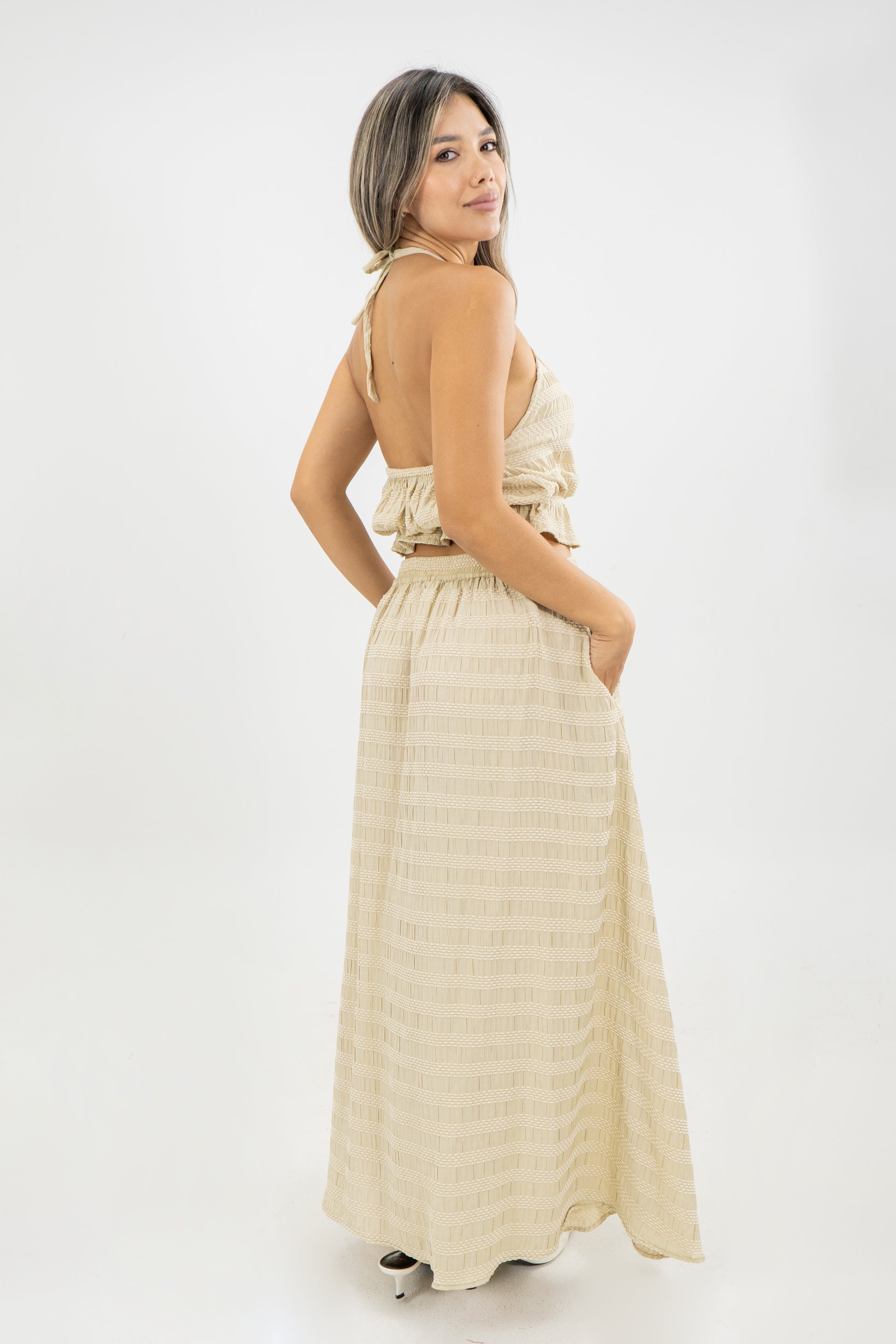 El Top Uma refleja la femineidad moderna y la elegancia relajada que define la colección Palmarias. Confeccionado en una base de tela Gypsy, ofrece una textura suave, elástica y envolvente que se adapta al cuerpo con delicadeza. Su diseño combina líneas minimalistas y cortes sutiles, destacando la silueta con naturalidad y sofisticación. Perfecto para crear conjuntos versátiles, el Top Uma puede lucirse tanto en un look casual de día como en una propuesta más refinada de noche. Inspirado en la fluidez y armonía de la naturaleza tropical, esta pieza encarna la esencia de Sofisticadas: una mujer que irradia confianza, gracia y estilo auténtico.