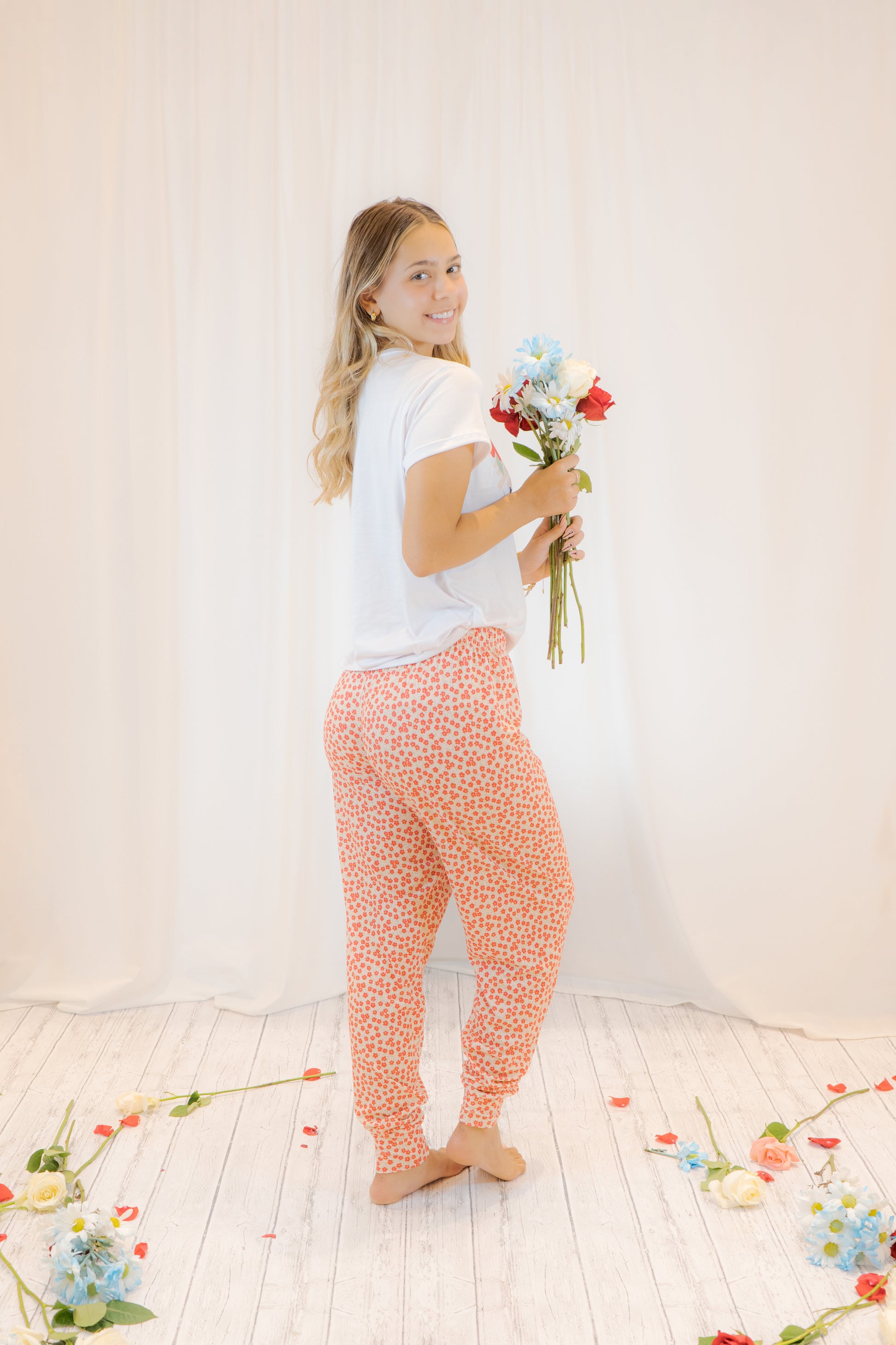 PIJAMA FLORES AZUL - CAMISETA - PANTALON