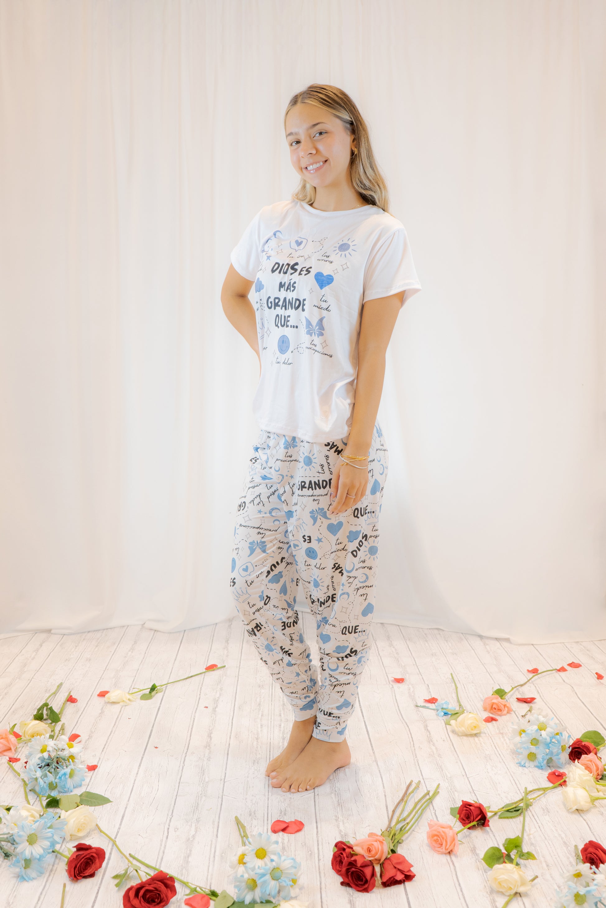 Ligero, suave y con un diseño floral encantador que invita al descanso. Este set incluye camiseta de manga corta y short sublimado, ideal para las noches cálidas.